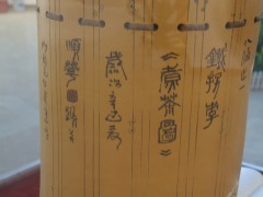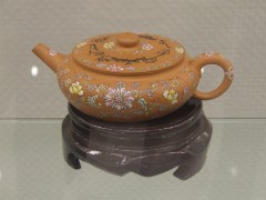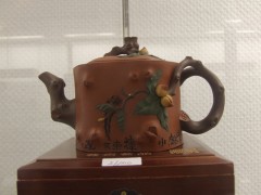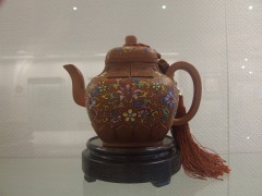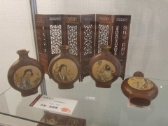 吴顺华的作品通过刻、绘、描、彩等艺术手法和技艺,再现了中华文化的博大精深和美术情韵,形成了霸气、大气、神气、文气、人气的吴氏风格。近日,他携其跨度20年约300件展品到东莞艺展中心展览。这次展览也将展出吴顺华的得意作品,即“镇殿之壶”《盛世和谐》一套三件,外形相同而大小不一。此壶曾在2007年“中国收藏家喜爱的紫砂艺术大师”作品展中获金奖。吴顺华称它为此次展览的“亮点”,如今最大的那件要30万,最小的要3万。吴顺华的作品已经被中国外交部选定为对外文化交流礼品。