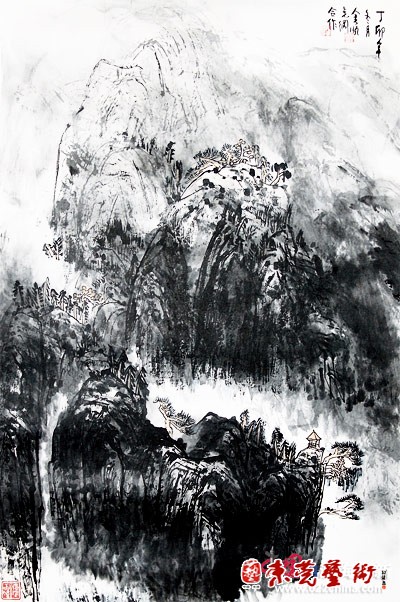 [蔡金顺]:有一定的必然性和偶然性。我从小就受家庭的熏陶,有幸受到一些大家的亲自指点。回忆当年,在我很小的时候就喜欢看画,我是在山区长大的,上小学以后,离开了山区,走到大山外,对山有着一种像母亲一样的还念,这也促使了我后来专注于画山水。1963年春天,我买了一本《黄宾虹画语录》,这是我第一次接触国画理论,对于我的笔法和墨法技艺的提高有极大的帮助。后来穆仲芹老师教我们画画的时候,告诉我们一定要静下心来,淡泊名利,而我们当时有不少人也是想着将来要当大画家,当时对老师的话不理解,后来经过多年的磨练才渐渐明白,这就是在老师在教我们怎样做人,如何作人,不要光想着出名。