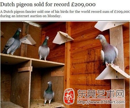 国际在线专稿:据英国《每日电讯报》1月31日报道,荷兰一名赛鸽爱好者日前在网上将一只鸽子拍出20.9万英镑(约合208万元人民币)的高价,创下了全球单只鸽子拍卖的最高记录。买家是一名中国人。