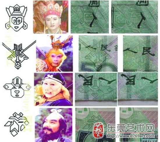 继第五代百元人民币被网友爆出“藏猫猫”图案后,近日又有网友从第五代50元人民币中发现《西游记》中唐僧师徒四人Q版脸谱。对此,河南钱币专业委员会会长袁银龙(微博)解释,图案应是先秦时期的一种纹饰。