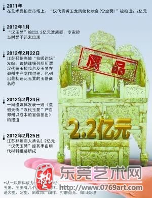 “汉代玉凳”到底是“国宝”还是“赝品”的争论在沉寂一段时间后,再次发酵并持续升温,导火线是江苏邳州当地“拉呱论坛”的一则网帖。该帖是2月22日发出的,详细列明了所谓汉代黄玉梳妆台及玉凳在邳州生产制作过程,甚至也列出了最初造此玉凳的玉器商名称。该帖子描述说,“一个叫赵某某的人从2010年开始,历时3个月在李口古玩玉器城加工而成,当时成本为50多万元。”