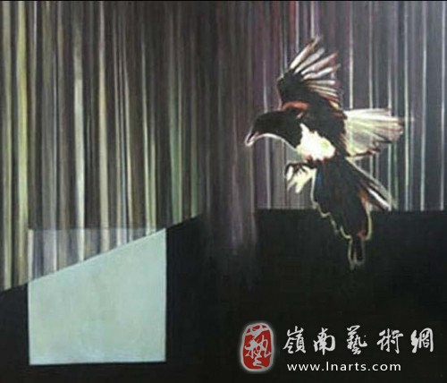 从这五幅画作中可以看到,赫斯特所有这些作品中的喜鹊,都是在一个房间的角落或是桌子上,而麦克劳克林画作上的鸟儿则是在飞行。