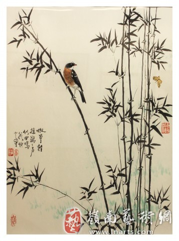 题识:嫩篁轻摇鶲鶲声似曲鸣 振恒写生