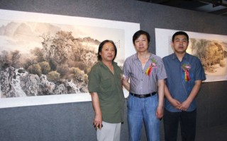 合影留念(从左至右:画家 张志平、画家 赵学东、画家 谭昌龙 )