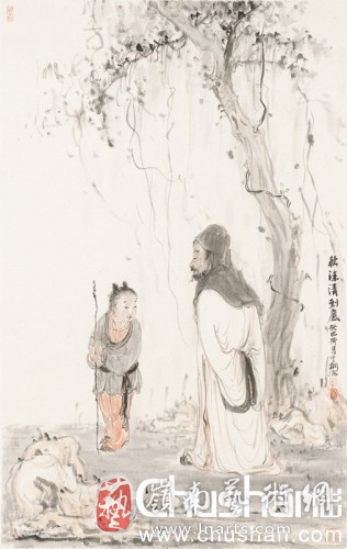 李桐印象中的杭州,很温润,没有太强烈的东西。生于斯,长于斯,温润的杭州印象,无疑潜移默化地浸染了李桐的审美。他的人物画,柔和明净,禅意盎然。古雅简淡的设色,干净流畅的线条,画中人眼眸低垂的静穆,以及似古非古、似今非今的人物形象,无不营造出平和、静穆、纯净的意境。