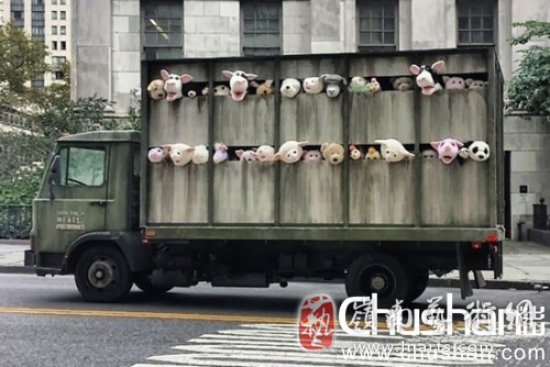 曼哈顿下城的作品受到了广泛的关注,一个叫做“羔羊的呐喊”(Sirens of Lambs)的作品,以一辆满载啜泣的毛绒动物玩具的屠宰场卡车作为主体,上周又在旁边装了一个开着碰碰车的死神形象。