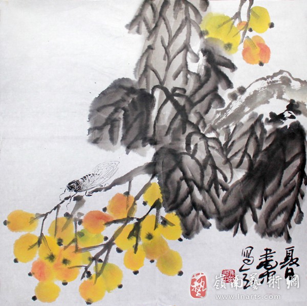 傅书中花鸟斗方《夏日》