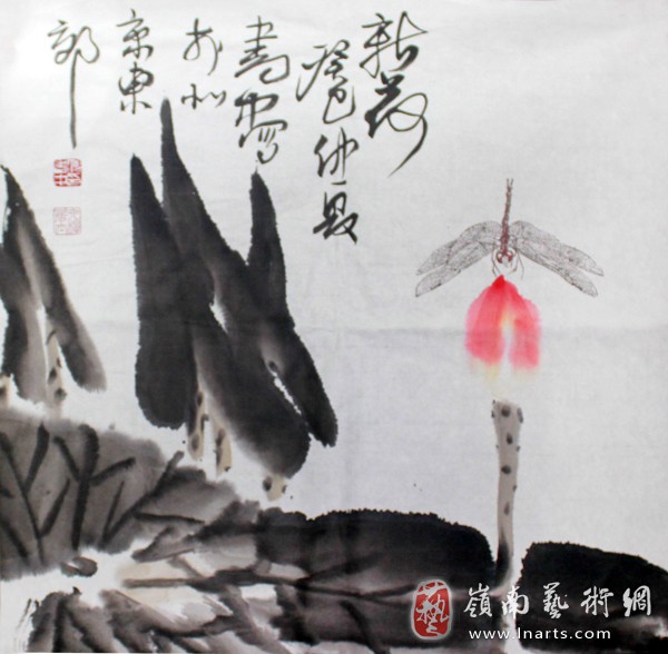 傅书中花鸟斗方《新荷》