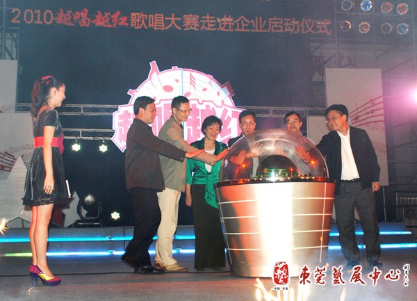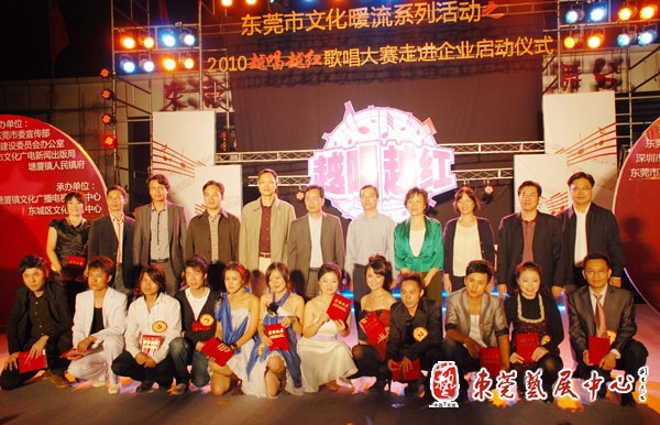 为贯彻落实东莞市委书记刘志庚关于“要突出新莞人特色”的要求,深化“文化惠民“工程,满足广大企业的文化需求,11月13日晚,由东莞市委宣传部、市精神文明办、市文广新局组织的东莞市文化暖流进企业活动来到我区,在东城区同沙科技工业园彩怡广场举行“2010越唱越红歌唱大赛走进企业”启动仪式。东莞市政府副秘书长黄福泉、市文明办主任李国全、市文广新局副调研员何环珠、市群艺馆馆长梁燕玲、市文广新局社文科科长许垂龙、东城区委委员吴沛林、塘厦镇委委员、纪委书记叶浩昌、塘厦镇副镇长、镇武装部长杨晓斌和近3000名园区居民和新莞人参加了启动仪式。