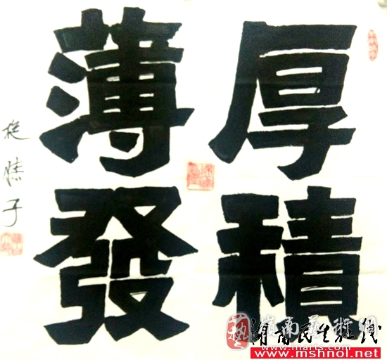 省收藏协会书画收藏专业委员会主任、湖南师大美术学院教授 陈慰民 :罗自立先生(别号抱膝子)是著名作家,他一生坎坷,历经艰辛,现已至耄耄之年,习字为乐事。由于他有童子功,从他的书法作品中可以看隶书、魏碑和唐楷功力,风格雄迈开阔,雍容大气,书卷气很浓。市场前景看好,颇具收藏价值,升值空间很大。