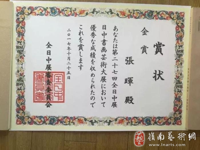 张晖教授作为此次获邀参展的主要画家之一,带来了自己精心挑选的写意花鸟画作品,受到参会中日群众的一致好评。经过第27回全日中书画艺术大展艺术评审委员会的严格评审,写意花鸟画画家张晖先生因其卓越的画技荣获此次全日中展/日中书画艺术大展金奖!