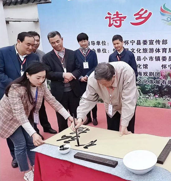 安徽古塬书画艺术院艺术顾问、著名书画家萧承震老师在开幕仪式现场书写墨宝,赠送于怀宁小市镇为这次诗乡·花香活动祝贺与助兴,给开幕仪式现场添点色彩、尽显风采、感人肺腑!