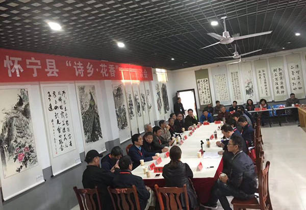 当日11点,由安徽古塬书画艺术院理事长周剑锋陪同中国著名山水画家郭公达教授与怀宁县宣传部长程廷灿,小市镇党委书记何世权一起为创培基地隆重揭牌。随后举行怀宁县诗乡·花香文化座谈会,座谈会由小市镇党委书记何世权和古塬书画艺术院范晓茫院长分别主持。座谈会第一环节首先由小市镇镇长陈经纬与古塬书画艺术院理事长周剑锋进行签约长期战略合作协议,古塬书画艺术院捐赠小市镇人民政府24副名家作品,给予永久收藏,同时并颁发作品收藏证书。周剑锋理事长座谈会中特别强调安徽古塬书画艺术院是一家公益性的社会组织,把弘扬传播传统文化为己任,积极做好与小市镇的文化共建活动,助力乡村振兴。