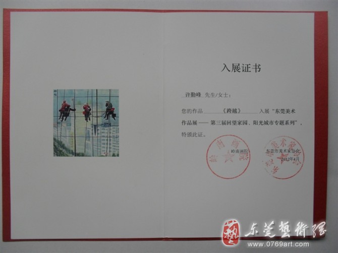 清风轩书画社许勤峰油画<跨越>入展东莞第三回美术大展