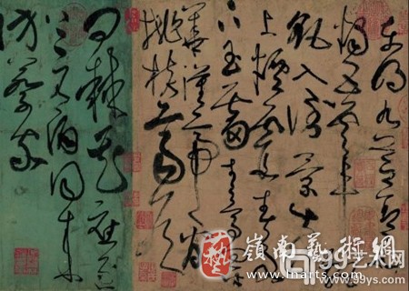 不只是绘画,书法更是与酒结下了不解之缘。书法家们或以名山大川陶冶性情,或花前酌酒对月高歌,往往就在醉时吐出胸中墨,酒酣后“解衣盘薄须肩掀”,一任天机,淋漓挥洒,神行纸上,从而作出一幅幅精品,这就为我们留下了许多富有浪漫色彩的佳话和艺术珍品。在这里,酒已成了他们创作时必不可少的重要条件。