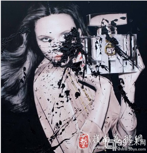 险峰用一种否定式的黑色砸向“美女”“路易威登”“迪奥”,其本意是砸向西方体系的价值观,他是站在一个纯粹东方人的立场予以反抗和抵制。如果说杜尚的“画胡子”是一种调侃来否定“经典”文化,那么险峰确是充满激情地抗争和反对关于商业社会给予人的思想禁锢和精神性的掠夺。他所命名的《花开花落》开、乃人的生命(美女)自然之花,落、乃于我们日益麻醉和疯狂的欲望之中。“文化的水泥”一步一步将我们凝固,我们只有不能目睹地将其涂黑,如此而已,我喜欢险峰的作品。
