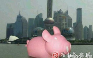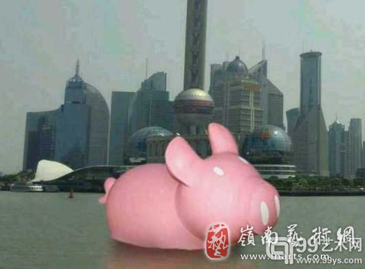 我个人欣赏的是另一个作品:“红粉猪”。创作者是我上海朋友的一位同事。他不是传统意义上的艺术家,而是Andy Warhol说的,那个“十五分钟出名”意义上的艺术家。相比香港、北京还有其它华夏名城里的那些趴在地上,拼命摇尾巴的“鸭迷”们,可以说,他是真正吃透了“大黄鸭”的艺术精神,并能够因时制宜,“活学活用”。虽然不能说是“青出于蓝而胜于蓝”,但对中国人而言,上海“红粉猪”的艺术内涵与寓意,对,还有“黑色”幽默,都远远胜过那个漏气的香港“大黄鸭”。