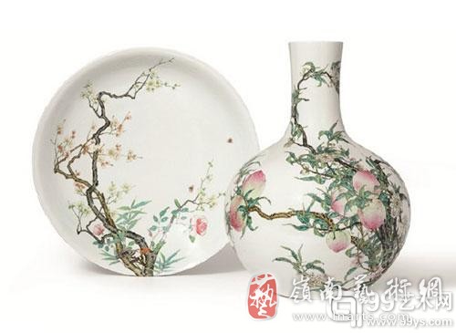 乾隆粉彩九桃天球瓶及雍正粉彩月季梅花图大盘(图片资料)