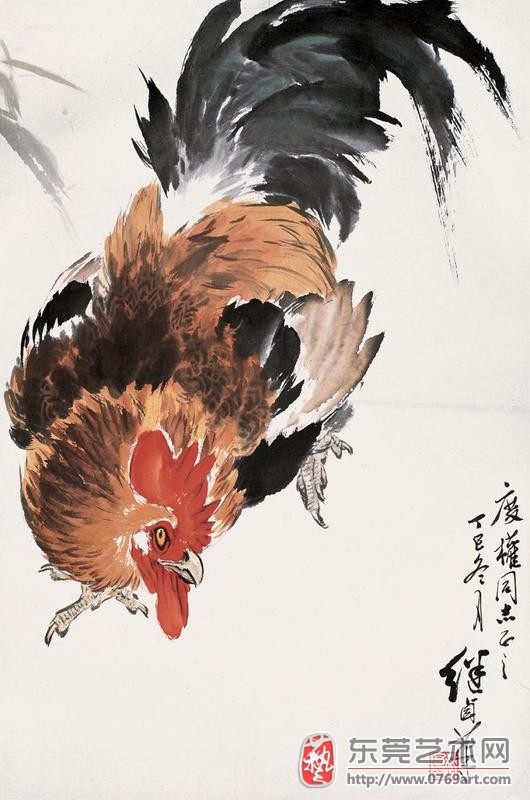 石鲁先生原名冯亚衍,四川仁寿人,慕石涛、鲁迅之品格,因以石鲁为号。先生生于一九一九年,冯氏初为邑里故族。辛亥鼎革,家世破落而余韵犹丰,科举废除而诗书尚存。先生聪颖好学,自幼熟读经书。余学三年,随兄赴锦城入《东方美专》习中国画。旧科新学,良修杂芜,国运不兴,烽烟四起,杂言群出,触蛮相竟,重技轻文,宣法抑道。于先生之正气布下了无名火,亦为先生之画道植下了谬误根。学成归执教乡里。越明年,先生弱冠,感国乱、伤时事,愤污吏,怜子民,于是孑然一身,登自行车越巴山,穿秦岭,由川入陕,辗转至晋而赴延安。于旧作中曾有[足踏日月促双轮,投笔从戎万里征]之句,即谓先生此举也。
