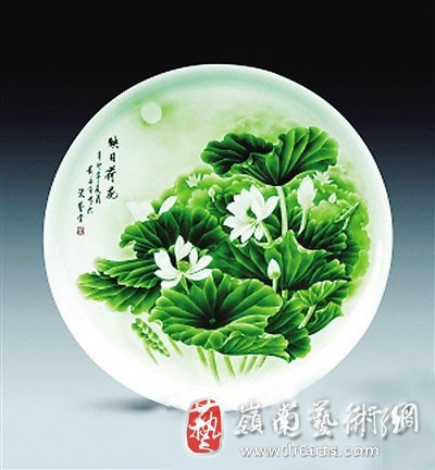 黄永平创作的《映日荷花》釉下绿彩瓷盘