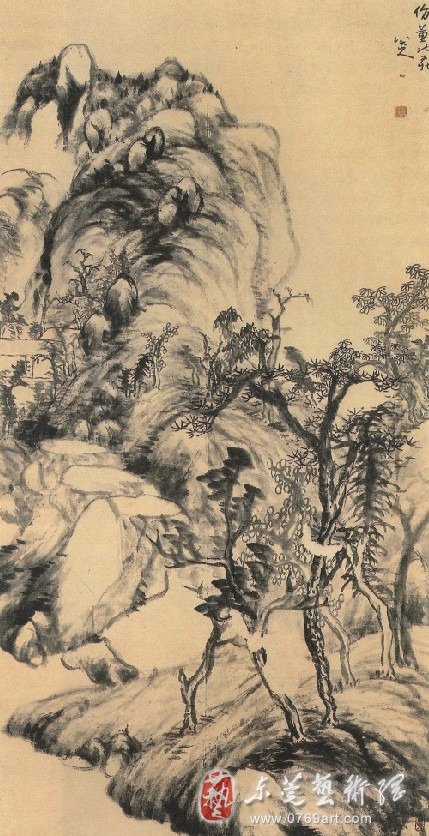 朱耷 仿北苑山水图轴 180.3×87.5cm