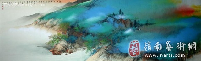 我感觉,陈无忌作画有点像诗人咏物,善于在画境中表达诗意,善于在有限景色中开发画外意,也许由于他毕业于上海大学文学院中文系,对于诗情画意画别有会心吧。他的设色山水,总在“貌写物情,摅发人思”中,把具体感受融入气象雄秀的大化,不乏北宋人的高迈壮阔,千岩万壑,也有南宋人的一角半边,幽情美趣。可使受众眼观流霞溢彩,阴晴明晦,思入风云变化,神游物外,体味人心与宇宙的和谐。然而,他又不像古今的所谓文人画家,率尔操觚,专意笔情墨趣,丘壑易穷,位置乖戾;而是像古代的职业画家一样,丘壑多姿,笔墨功深;也像现代的专业画家一样,把握物象,得心应手。这无疑与他的学画经历有关。