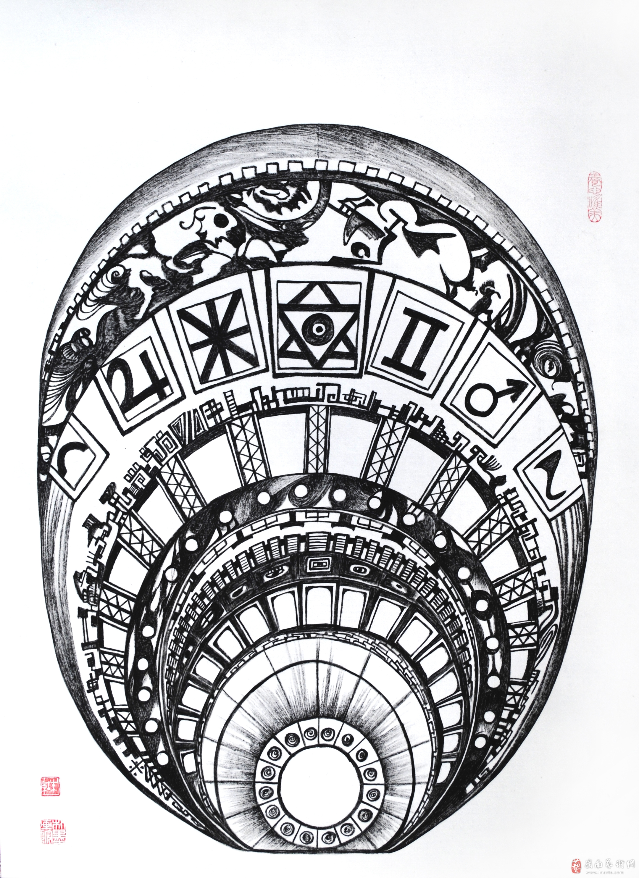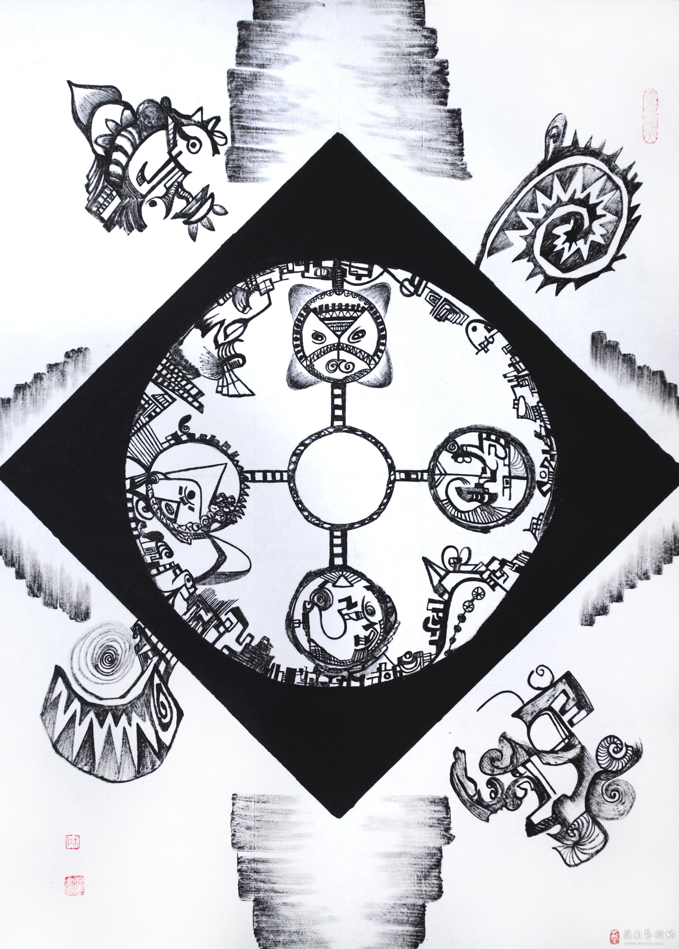 作品名称:《地球中心》 规格:50×70cm 作者:朱红