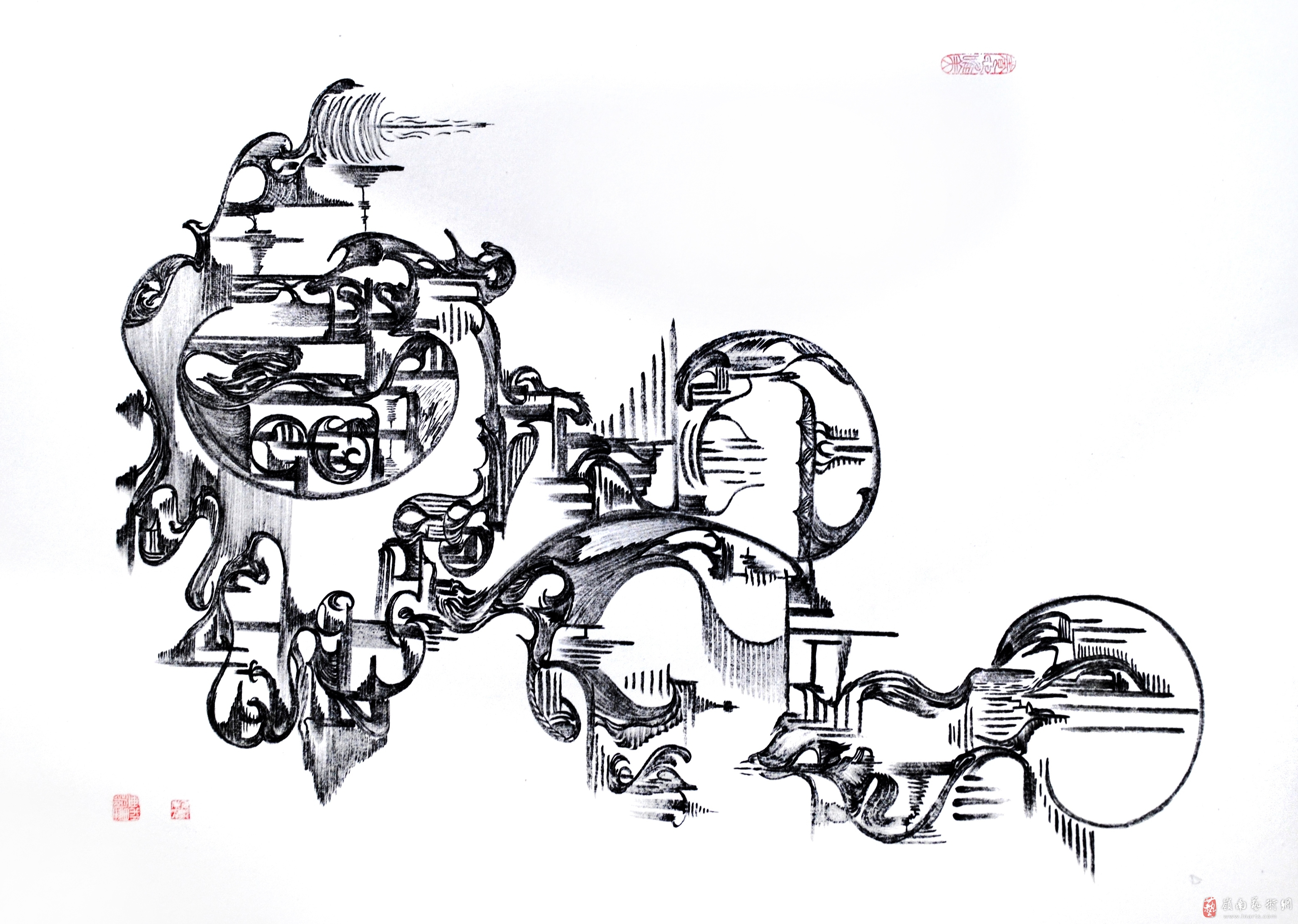 作品名称:《穿越》规格:50×70cm 作者:朱红
