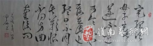 卞云仙的笔法,飘若浮云一般,鸾漂凤泊,遒劲丰润,又如游云惊龙,生动至极,栩栩如生。他注重字体的生命力,当把自己的情感注入字墨篇幅之中,一幅幅作品都充满活力,生机盎然。书法是绘画意境中的一个组成部分,书法从属于绘画,在画中,讲究“气韵生动”,而书法同样亦然,气乃生机之气,韵乃生灵之韵。卞云仙的书法作品中,张力十足,每个字符都仿佛若有生动的活物,运动着下一个字的静止,静止着其他字符的运动,如自然中没有完全相同的生命一般,他的书法同样没有相同格调的字迹,即使相同一字,依情景之所生,依性情之起伏,依字里行间之所需,依篇幅情感之所用,融入意境,而抛绝世俗。