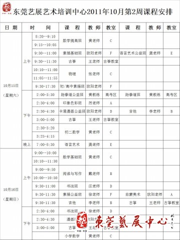 10月第2周课表