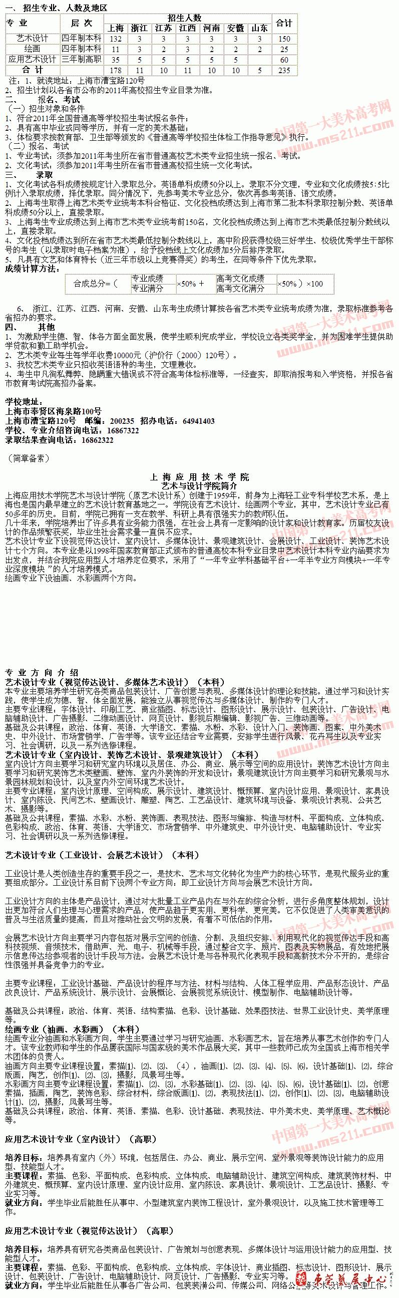 2011年上海应用技术学院艺术类招生简章