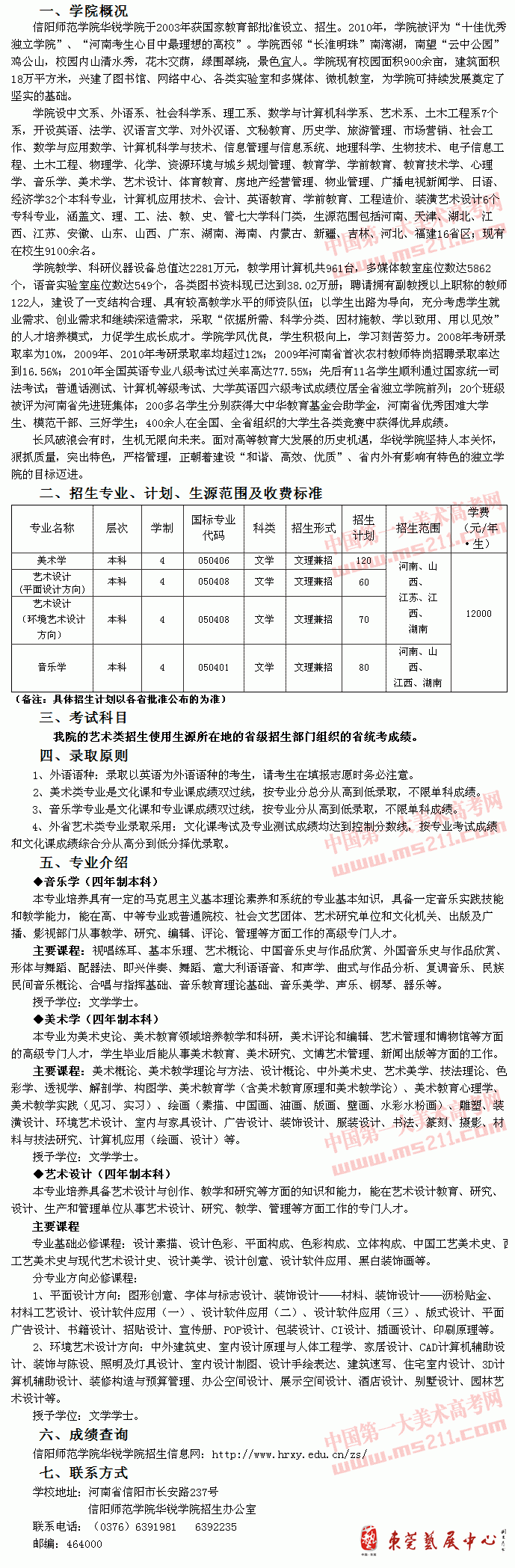2011年信阳师范学院华锐学院艺术类专业招生简章