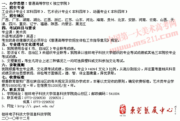 2011年桂林电子科技大学信息科技学院艺术类招生章程