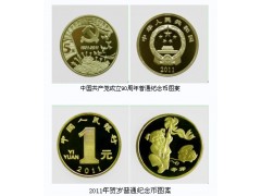 【三、中国共产党成立90周年普通纪念币和2011年贺岁普通纪念币与现行流通人民币职能相同,与同面额人民币等值流通。】