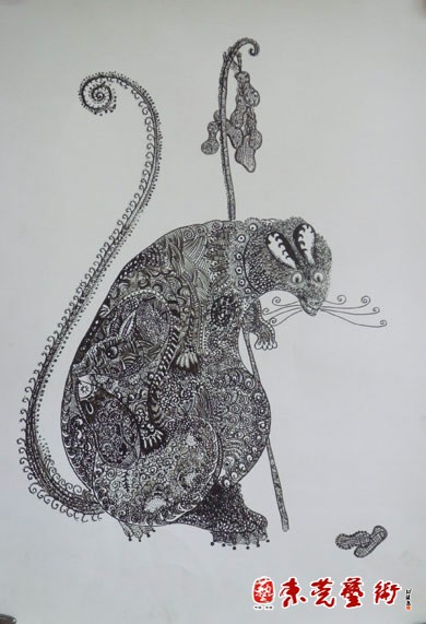 张:卮画是我独创的名字,《庄子》“寓言”篇里有“卮言日出,和以天倪……”卮是种酒器,斟满了,自然向外流溢,庄子以卮言来比喻自然流露的合乎天性的心声。以“卮”名画,就是“无心天成”的意思。卮画介乎抽象和具象之间,具有一定的中国民俗意味,基本上是种情感性造型。