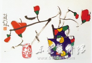 我自认为,这是一条新颖的路:遒劲的墨线和强烈的色块的交融。在画中,花鸟、人物都失去了原本的造型,成为一种类似半抽象的符号,花瓶、八大山人图式中的游鱼,一支梅花或几颗樱桃,仿佛以中世纪的镶嵌玻璃画的格式加以组合,但分明又有着中国画的空灵和老辣。从表面上看,这种画风和我早年的画风截然不同,但还是存在一种内在的推演关系:把传统变成“内核”,将形式感很强的西式的平面构成拿来作为外衣“包裹”。