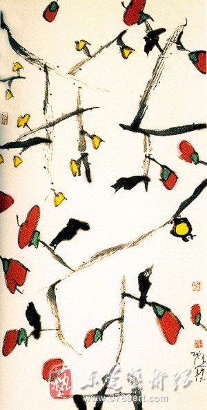 记:郎绍君先生曾经评说,张桂铭的创造性收获,在于平面构成框架中的物象变形、色彩表现和它们的有机关联,把全景、截景或折枝的结构打碎,将花、鸟、枝、叶等造型元素加以变形和装饰化,重新编织成一种新结构。