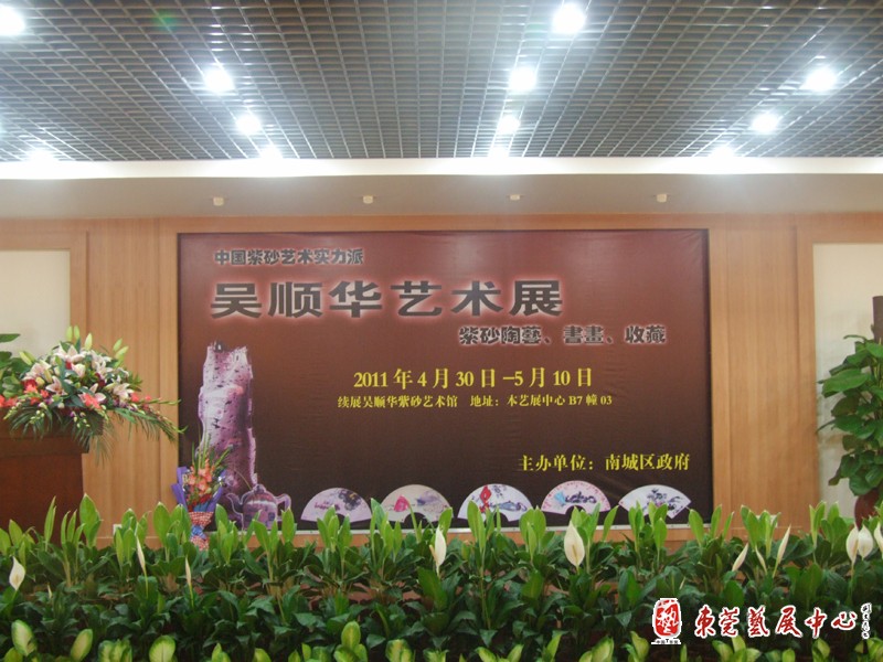 吴顺华的作品通过刻、绘、描、彩等艺术手法和技艺,再现了中华文化的博大精深和美术情韵,形成了霸气、大气、神气、文气、人气的吴氏风格。近日,他携其跨度20年约300件展品到东莞艺展中心展览。这次展览也将展出吴顺华的得意作品,即“镇殿之壶”《盛世和谐》一套三件,外形相同而大小不一。此壶曾在2007年“中国收藏家喜爱的紫砂艺术大师”作品展中获金奖。吴顺华称它为此次展览的“亮点”,如今最大的那件要30万,最小的要3万。吴顺华的作品已经被中国外交部选定为对外文化交流礼品。