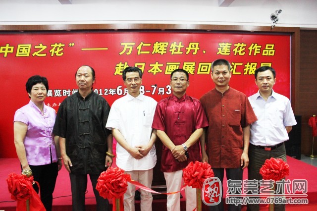 《中国之花》是万仁辉以其写工牡丹、莲花为独立主题的画展。去年4月下旬到5月上旬,万仁辉在德国慕尼黑举办《中国之花》个展,引起不小轰动。著名书法家党禺为其题赞曰“花展时节动慕城”。亦正是在去年6月下旬,万仁辉在广州二沙岛岭南会展览馆举办赴德画展回国汇报展,亦如这次展览的主题命名一样——《中国之花》。今年,为纪念毛主席延安文艺座谈会上的讲话发表七十周年和建党九十一周年,广东省文史馆民间艺术研究院和广东省收藏家协会将于6月28日至7月3日,在东莞诗书画研究院美术馆(艺展中心)为万仁辉举办赴日本画展回国汇报展。