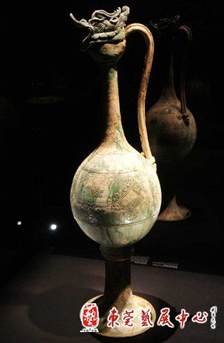 被称为此次展览最为震撼的展品之一的“勿里洞壶”,高逾1米,壶身刻有菱形带花叶纹样。