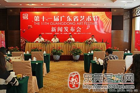 10月27日,第十一届广东省艺术节新闻发布会在广州举行。省文化厅副厅长杨树、省文化厅艺术处处长于万东、省委宣传部文艺处、东莞市文化广电新闻出版局和省艺术研究所负责人、媒体记者共60余人出席会议。
