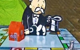 作品呈现的是这样一个画面:一个大富翁游戏罗盘,罗盘中间坐着一个愁眉苦脸的乞讨者,罗盘上有一栋红色的房子和一辆银色的跑车,虽然消费着这么好的物质,但他却扮演着乞讨者的角色,作品可说是对贷款消费和贪婪之心的一种讽刺。班克斯作品要表达的看法是:正是贷款提前消费导致了这次危机的根源。