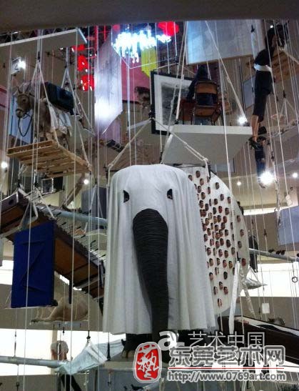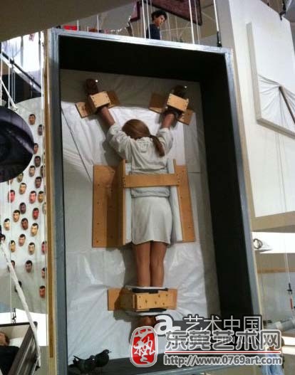 “我们爱死卡特兰了。”现场一位意大利籍女士说道,并一面要求摄影师取景卡特兰的作品进行合影。这次的展览也出奇得有意思,几乎卡特兰的毕生之作都集中到一起,以卡特兰式的悬挂用绳子捆绑和脚手架连接进行展出。