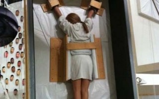 可以这么说,对艺术界、对艺术史以及整个文化的大不敬是这场名为“全部”的回顾展的突出特征。他的作品不仅嘲笑艺术而且嘲笑艺术家自身,有时也把艺术史作为搞笑的对象,从而挑战许多约定俗成的观念,包括美术馆展览系统的机制。这种敏感性最为突出的体现就是卡特兰恶作剧式的雕塑“他”,这件作品置于所有悬挂的作品的顶端,阿道夫-希特勒屈膝站立,他的眼睛和表情表露一种乞求的姿势,他的整个体型被缩小到类似于矮人族霍华特那般大小。