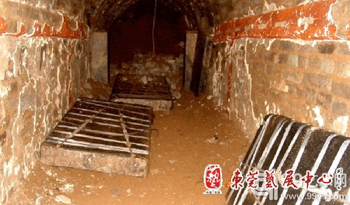 (5)这是犯罪分子在2004年5月盗掘敬陵珍贵文物过程中拍摄的墓室内情景。