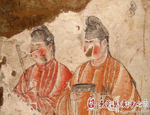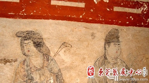 (2)这是犯罪分子在2004年5月盗掘敬陵珍贵文物过程中拍摄的墓室内的男女壁画。