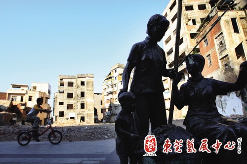 走进着熟悉的街道,心里却有一种莫名的压抑。为了解决塞车问题,在这湛蓝的天下面是遍地的瓦砾堆。大部分建筑都被拆除,仅剩几座骑楼。看着那飘扬的尘粒,每个东莞人都会感到忧伤,就像是一位老朋友即将离开自己,因为我们世世代代在这留下的回忆太多太多了。