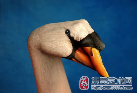 意大利人圭多·达尼埃莱(Guido Daniele)是个喜欢尝试新事物的艺术家,他曾经是个油画家,经常在白纸上画素描,做过人体彩绘,现在他将艺术转移到了手上。他可以利用人手作为底板,画出各种各样让人惊叹的动物图案。