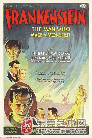 1931年拍摄的、由鲍里斯·卡洛夫饰演怪物的美国电影《科学怪人》(Frankenstein)被誉为电影史上最佳影片之一。其单张彩页海报在1993年被以19.8万美元卖出,成就了当时的最高电影海报价格纪录。