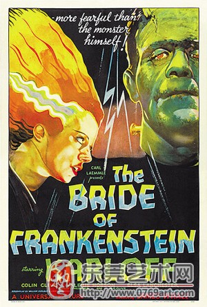 这是另一张由鲍里斯·卡洛夫主演的影片的海报——1935年拍摄的《科学怪人的新娘》(Bride of Frankenstein)。在2007年,这张海报的成交价达到了33.46万美元。